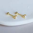 Boucles d'oreilles de style studs avec petite perle. Fermeture avec bille à visser à l'arrière. Délicates et passe-partout, elles sont un classique confortable à avoir!