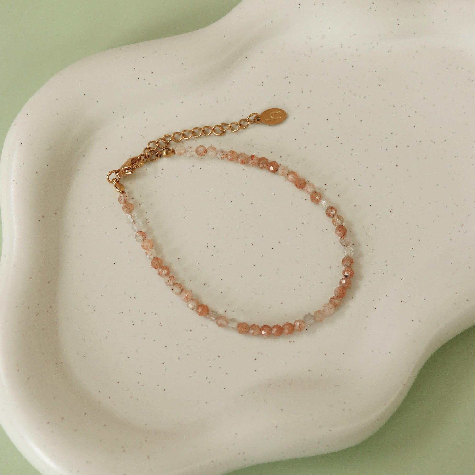 Bracelet en pierre naturelle de pierre de soleil de couleur rose pâle. Ajoutez de la couleur à votre poignet. Disponible en deux grandeurs.