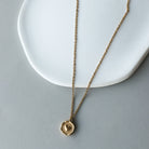 Collier en chaîne délicate avec pendentif de forme légèrement irrégulière et un coeur en son centre.