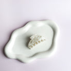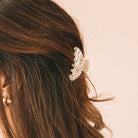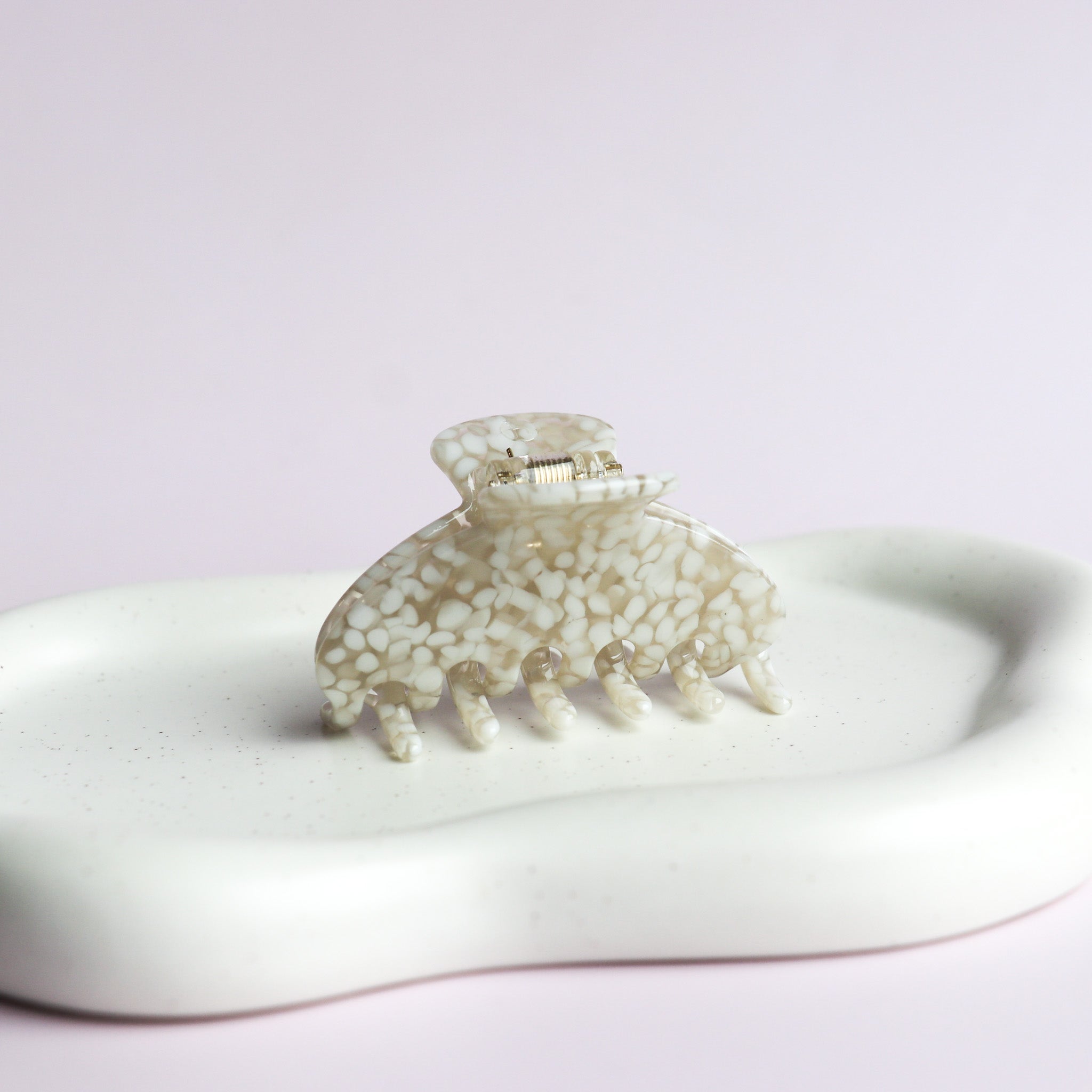 Pince à cheveux de forme arrondie aux motifs dans les teintes de beiges. Idéale pour les demi couettes ou encore pour les cheveux plus fins.