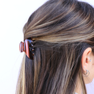 Pince à cheveux de forme arrondie. Idéale pour les demi couettes ou encore pour les cheveux plus fins. Retrouvez des motifs dans les teintes de bordeaux, vieux rose et gris-bleu.