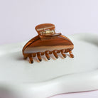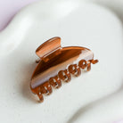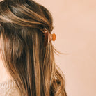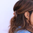 Pince à cheveux de forme arrondie. Idéale pour les demi couettes ou encore pour les cheveux plus fins. Retrouvez des motifs dans les teintes de caramel, crème et bleu-gris.