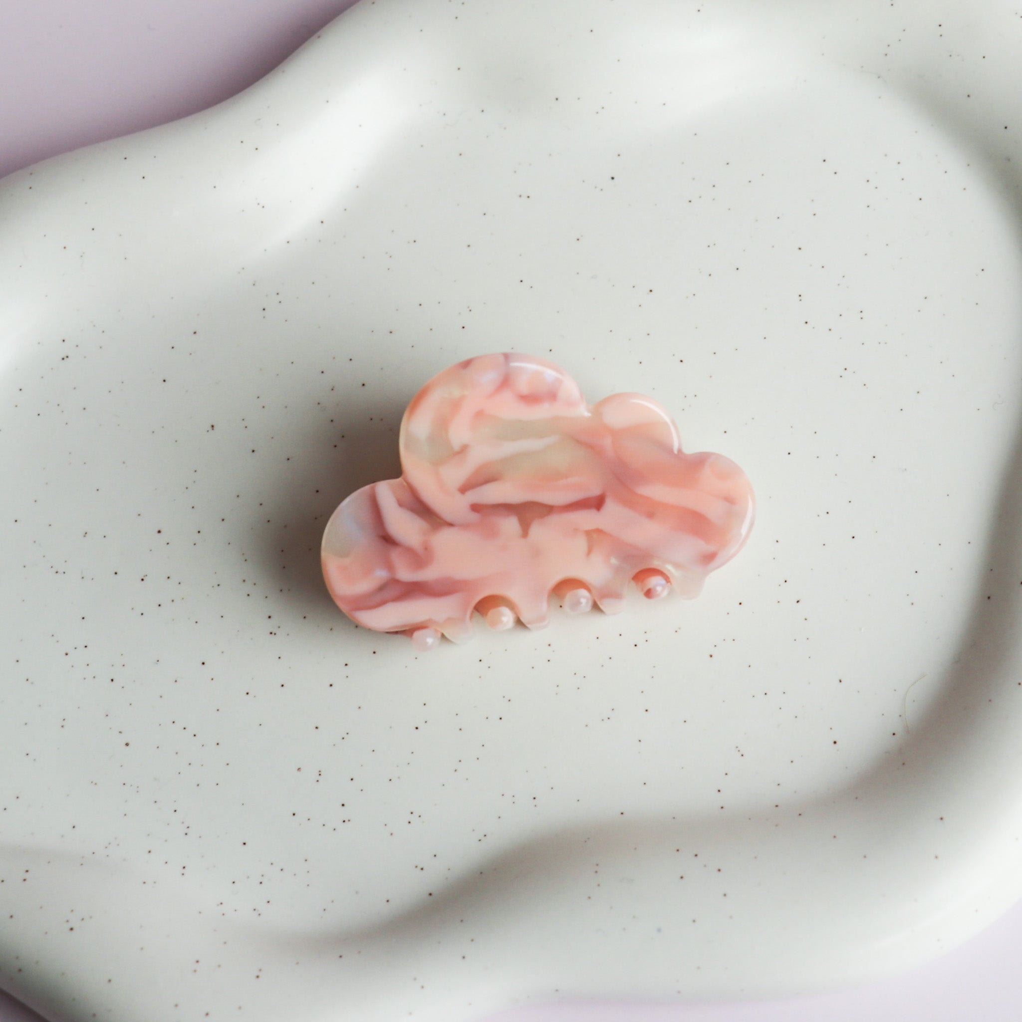 Pince à cheveux en forme de petit nuage. Idéale pour cheveux fins ou les demi-couettes. Elle est originale et colorée, dans les teintes de rose et de beige.