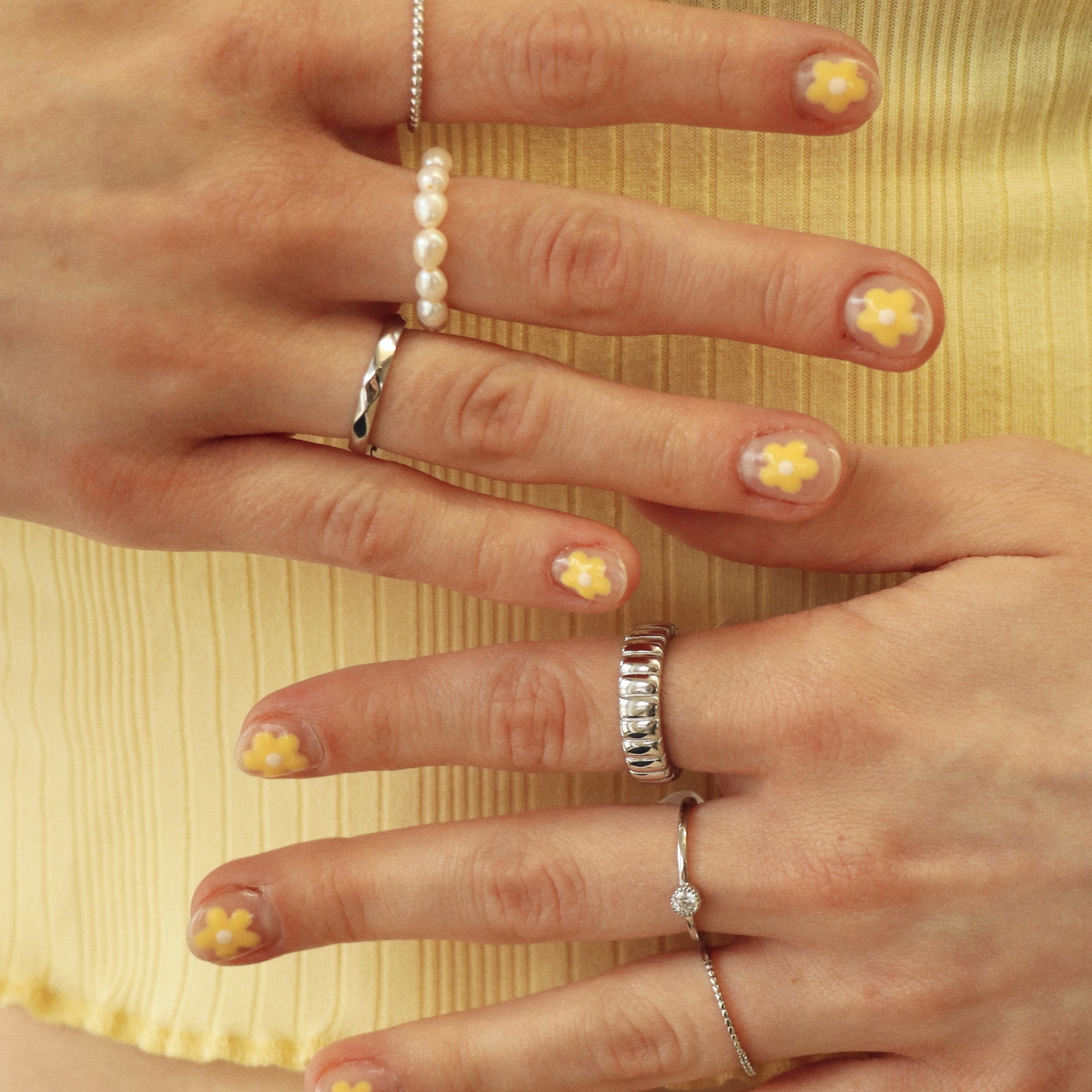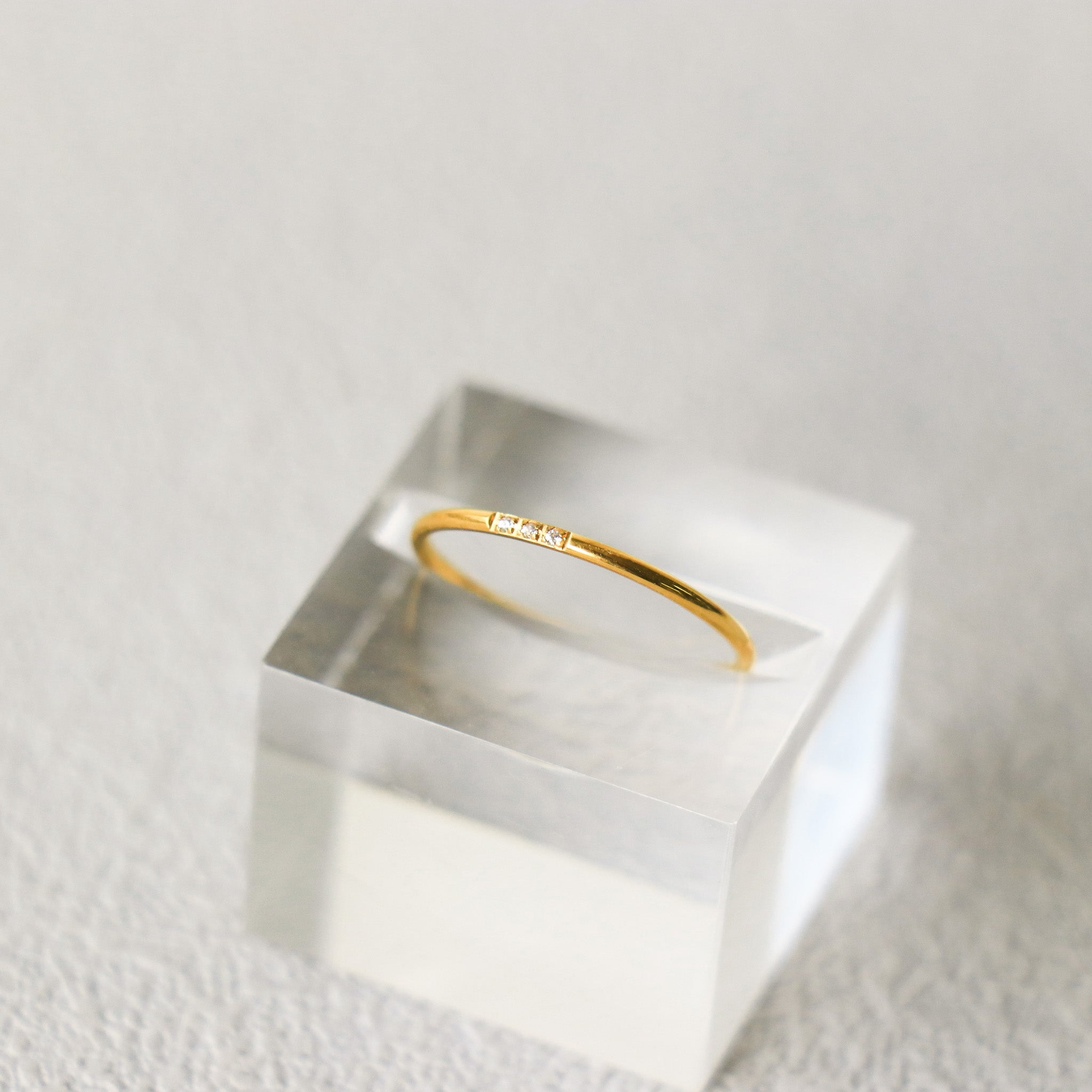 Bague très fine et délicate ornée de trois petits zircons clairs. Minimaliste et étincelante elle peut être portée avec nos autres bagues ou seule. Disponible en tailles 5 à 9.