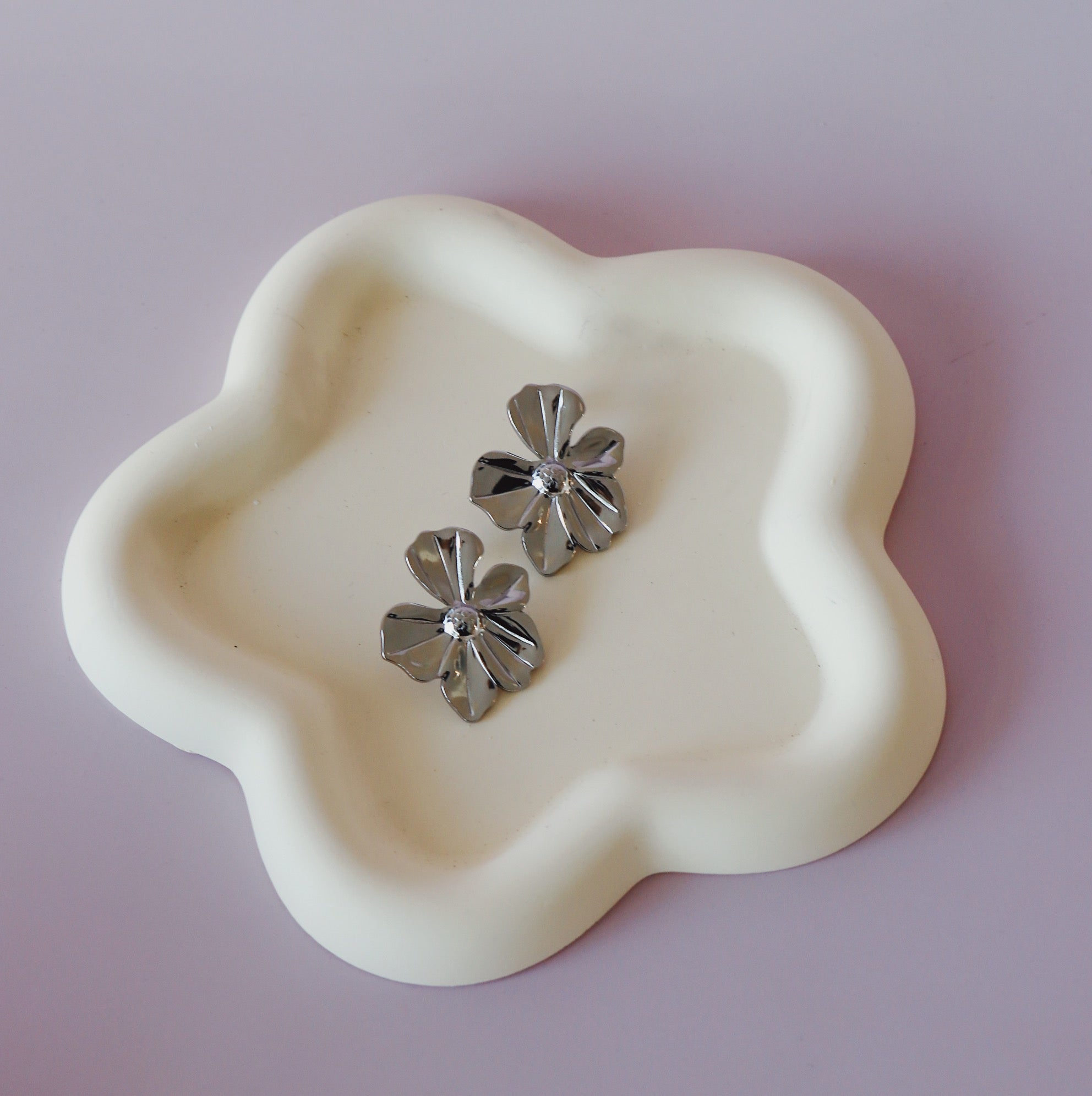 Boucles d'oreilles de type studs en forme de fleurs aux pétales travaillés.