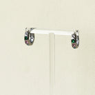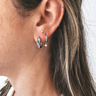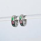 Boucles d'oreilles de type anneaux avec petits zircons de couleurs et forme variées.