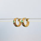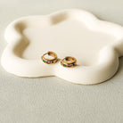 Boucles d'oreilles de type anneaux avec petits zircons de couleurs et forme variées.