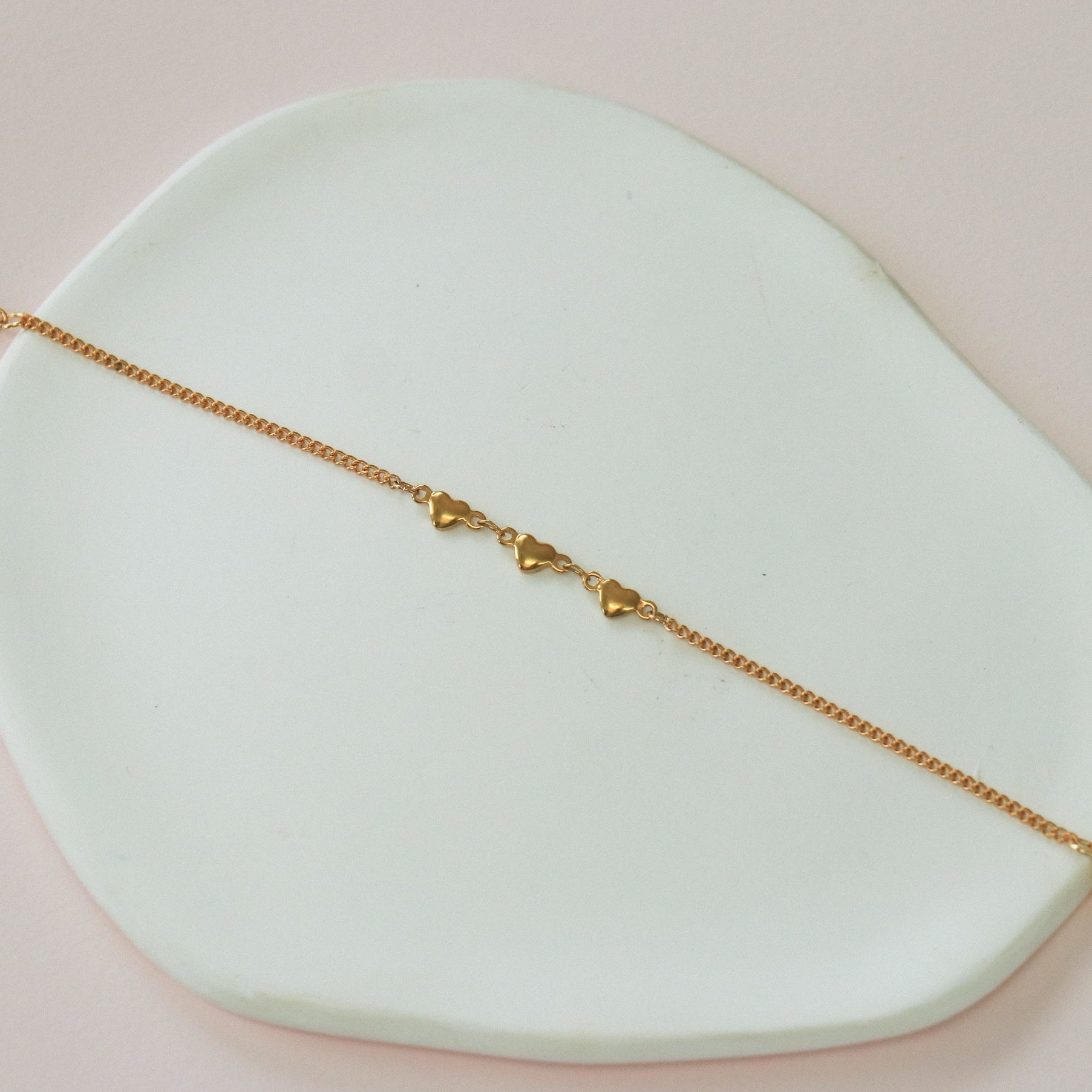 Bracelet délicat orné de trois petit coeurs. Se porte bien seul ou avec d'autres bracelets. Ajoutez ce nouvel essentiel à votre collection ou offrez-le pour démontrer votre amour.
