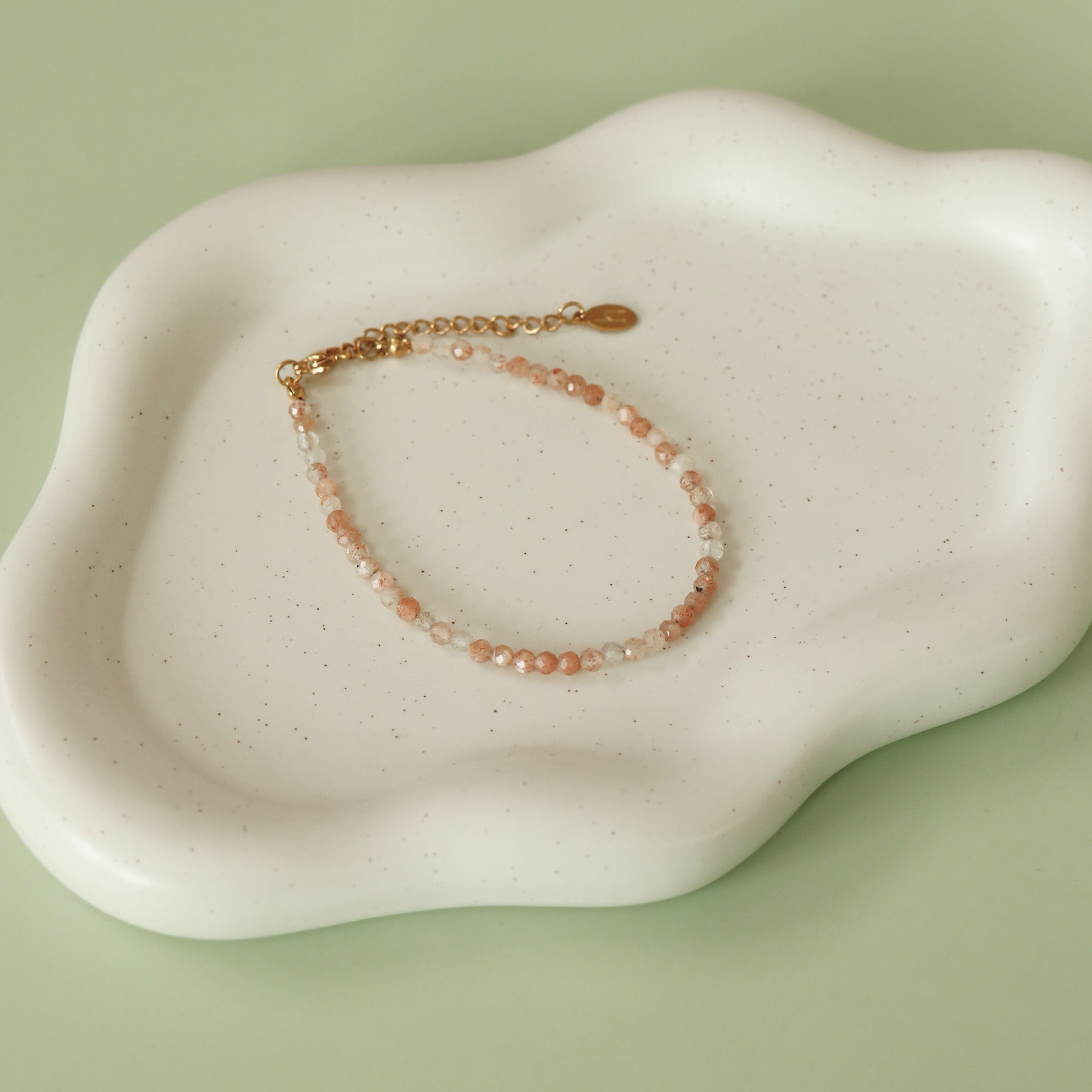 Bracelet en pierre naturelle de pierre de soleil de couleur rose pâle. Ajoutez de la couleur à votre poignet. Disponible en deux grandeurs.