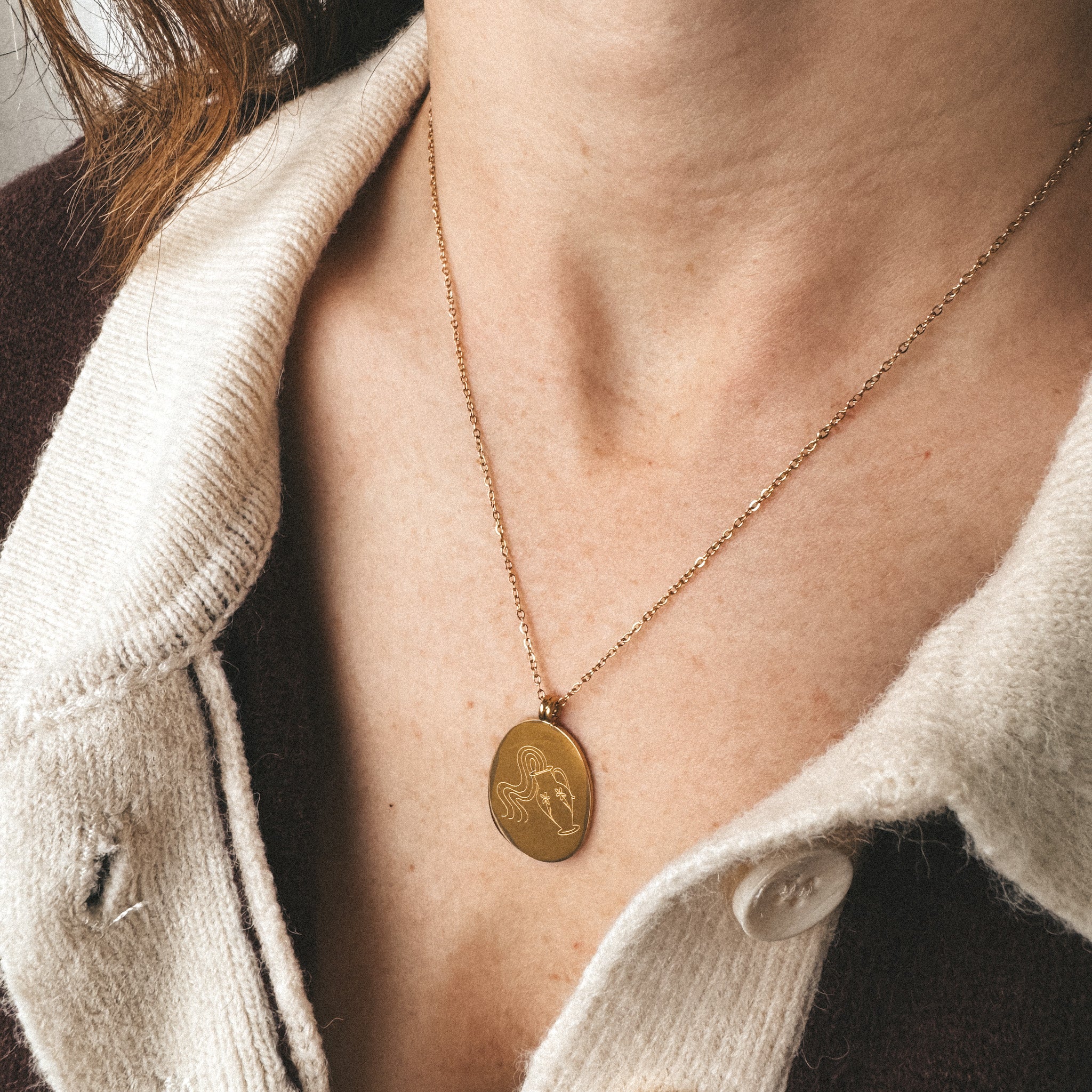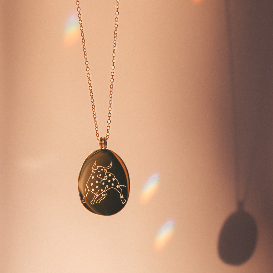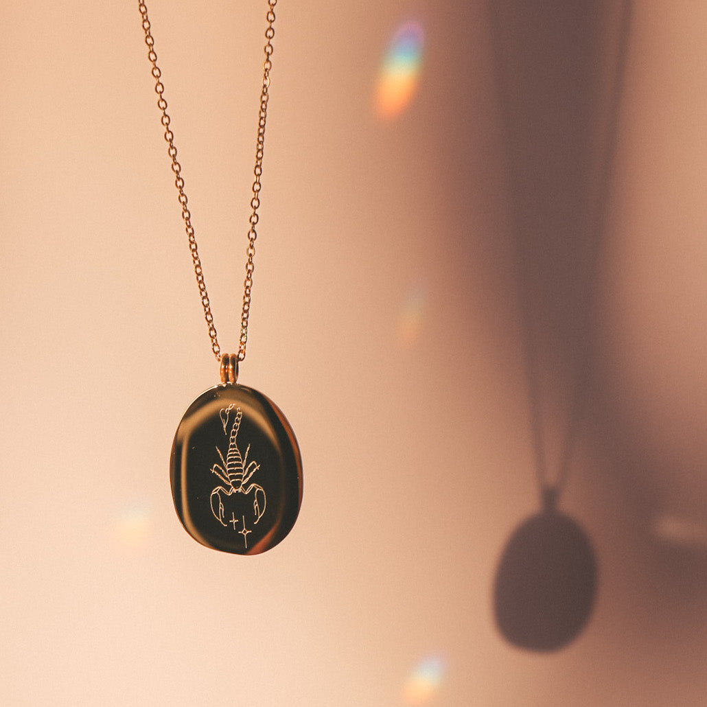 Nos colliers Zodiac sont uniques et originaux. Découvrez la gravure de votre signe avec les dessins de l'artiste et tatoueuse Émilie Paré (@tatoueusee). Gravés sur un médaillon de forme ovale légèrement irrégulière, vous retrouverez d'un côté le dessin du signe et de l'autre côté le nom du signe en français.