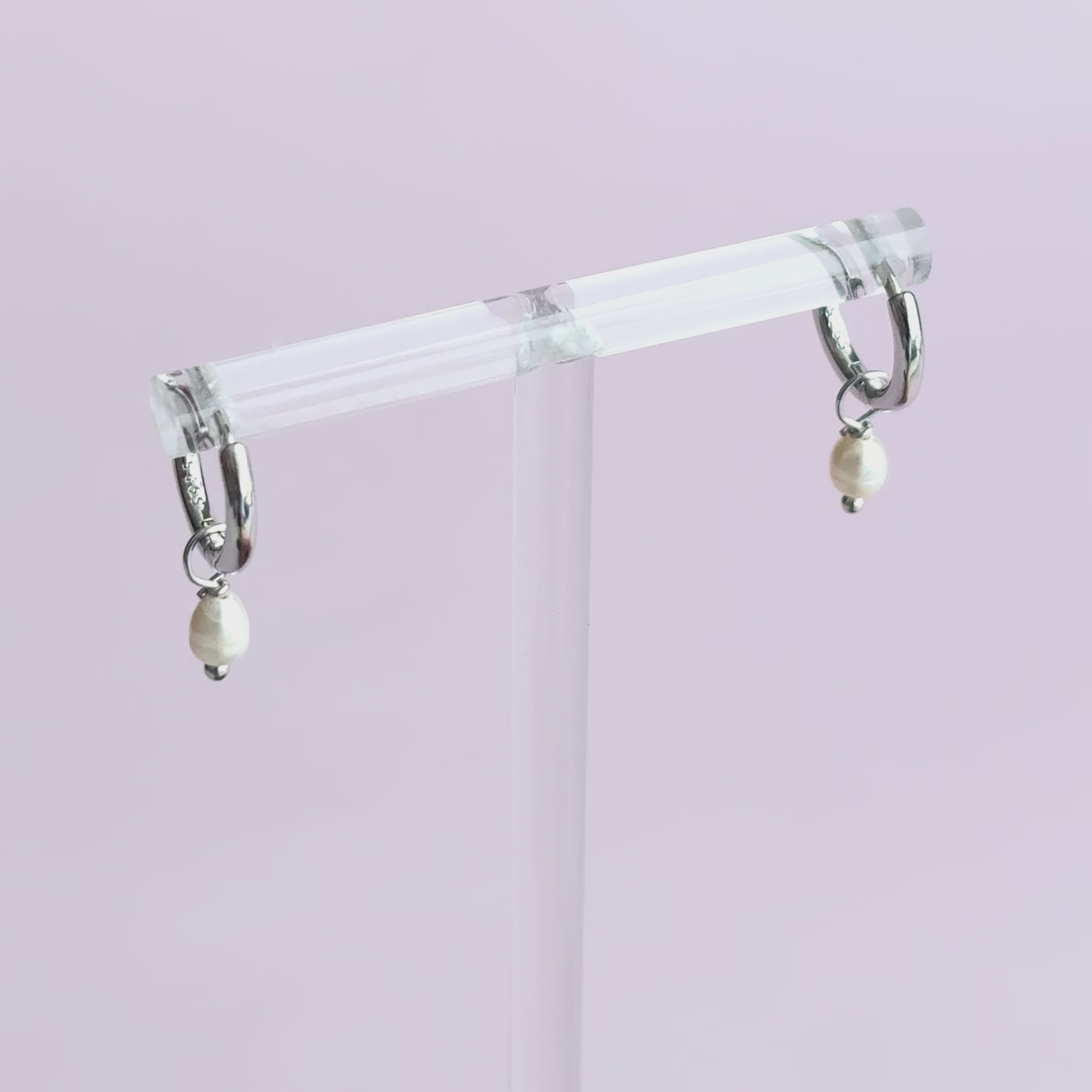 Boucles d'oreilles anneaux de type dormeuses ornées d'une perle d'eau douce.