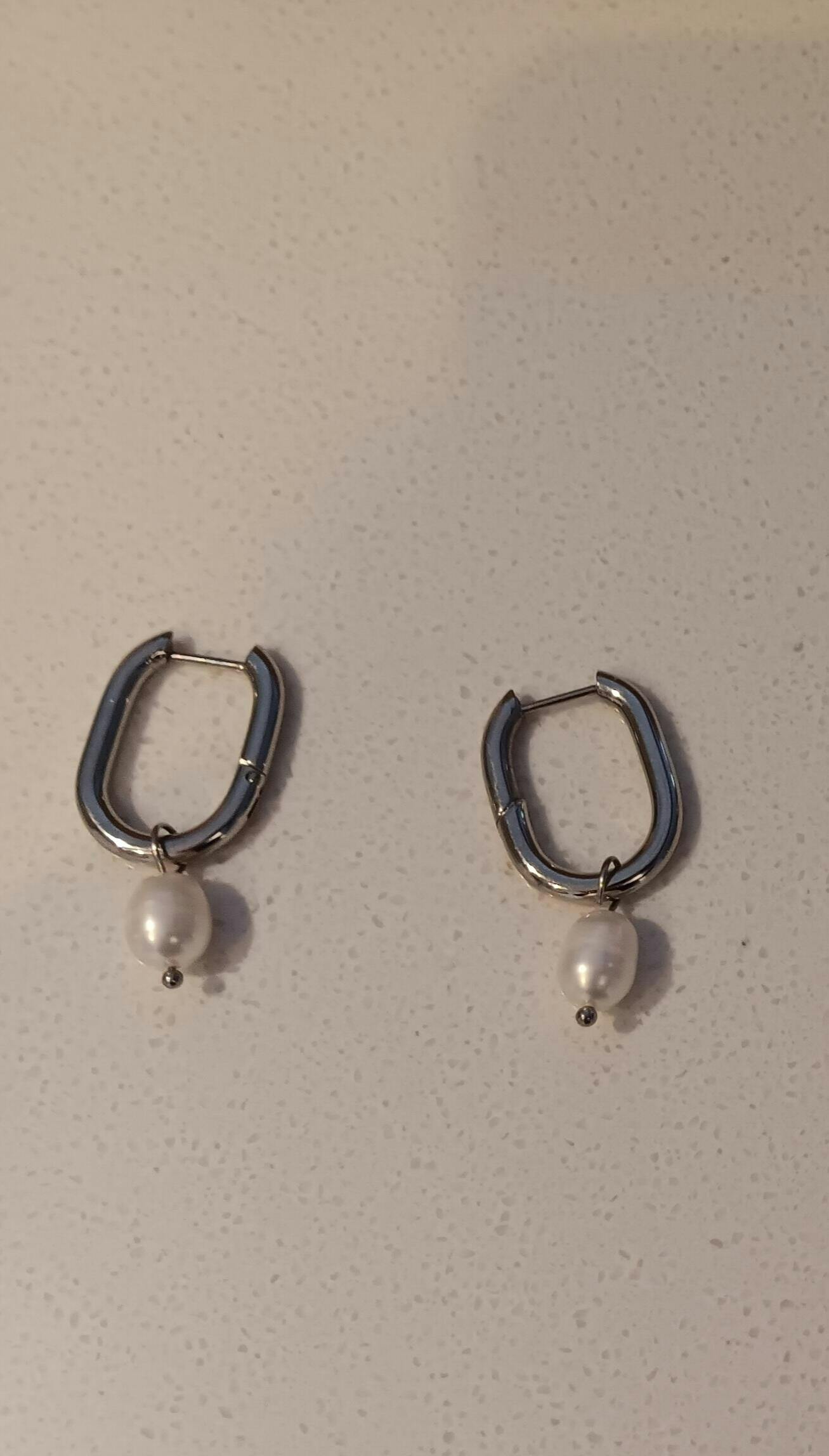 Boucles d'oreilles anneaux de forme ovale avec pendentif en perle d'eau douce.