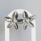 Boucles d'oreilles à tige (studs) en forme de fleurs avec perle au centre. Pétales avec détails gravés.
