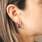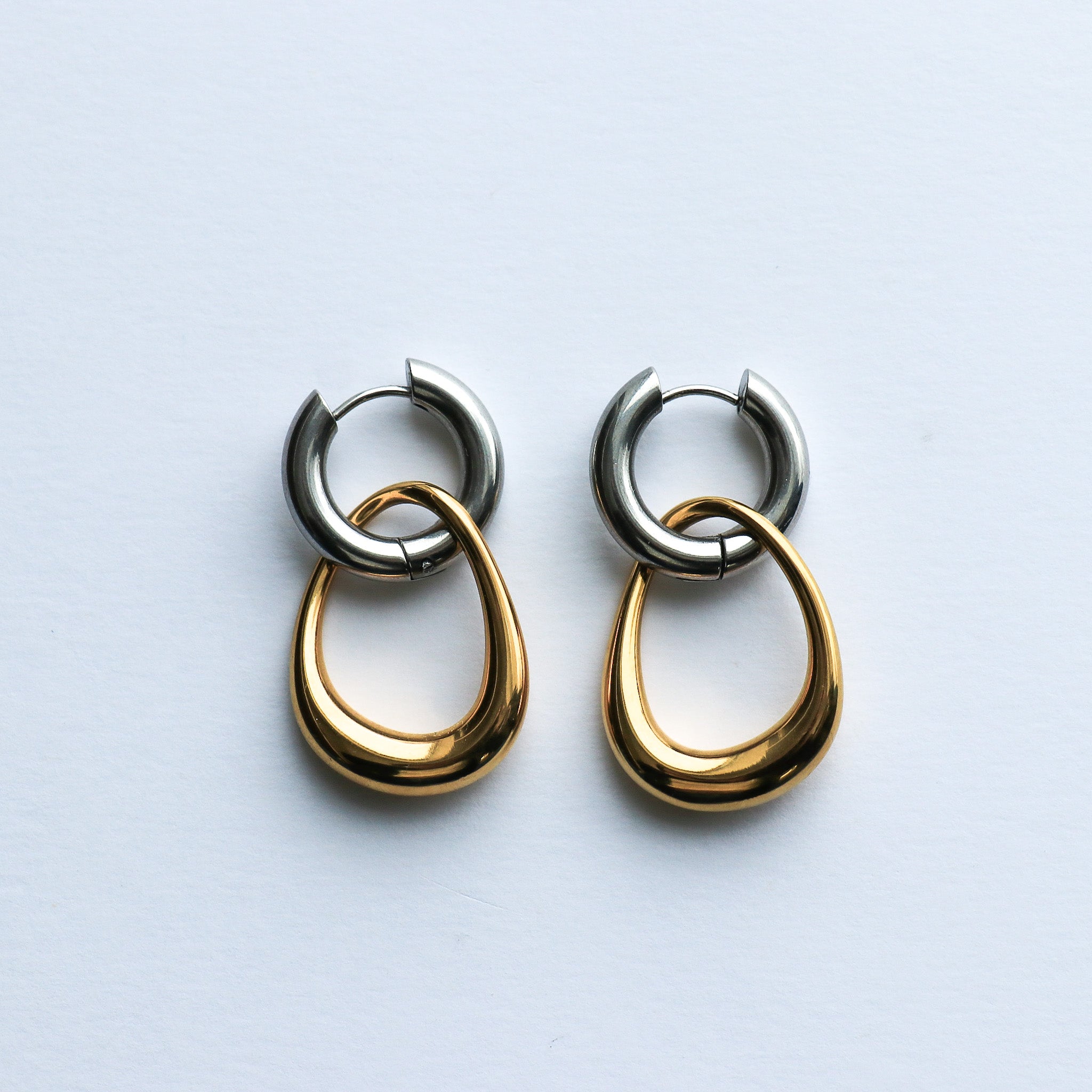 Boucles d'oreilles deux couleurs. Elles sont composées d'un anneau de couleur argent et d'un pendentif amovible de forme irrégulière de couleur or.