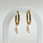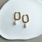Boucles d'oreilles anneaux de forme ovale avec pendentif en perle d'eau douce.