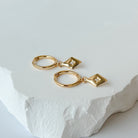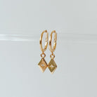 Boucles d'oreilles délicates de types anneaux avec pendentif losange et petit zircon incrusté.