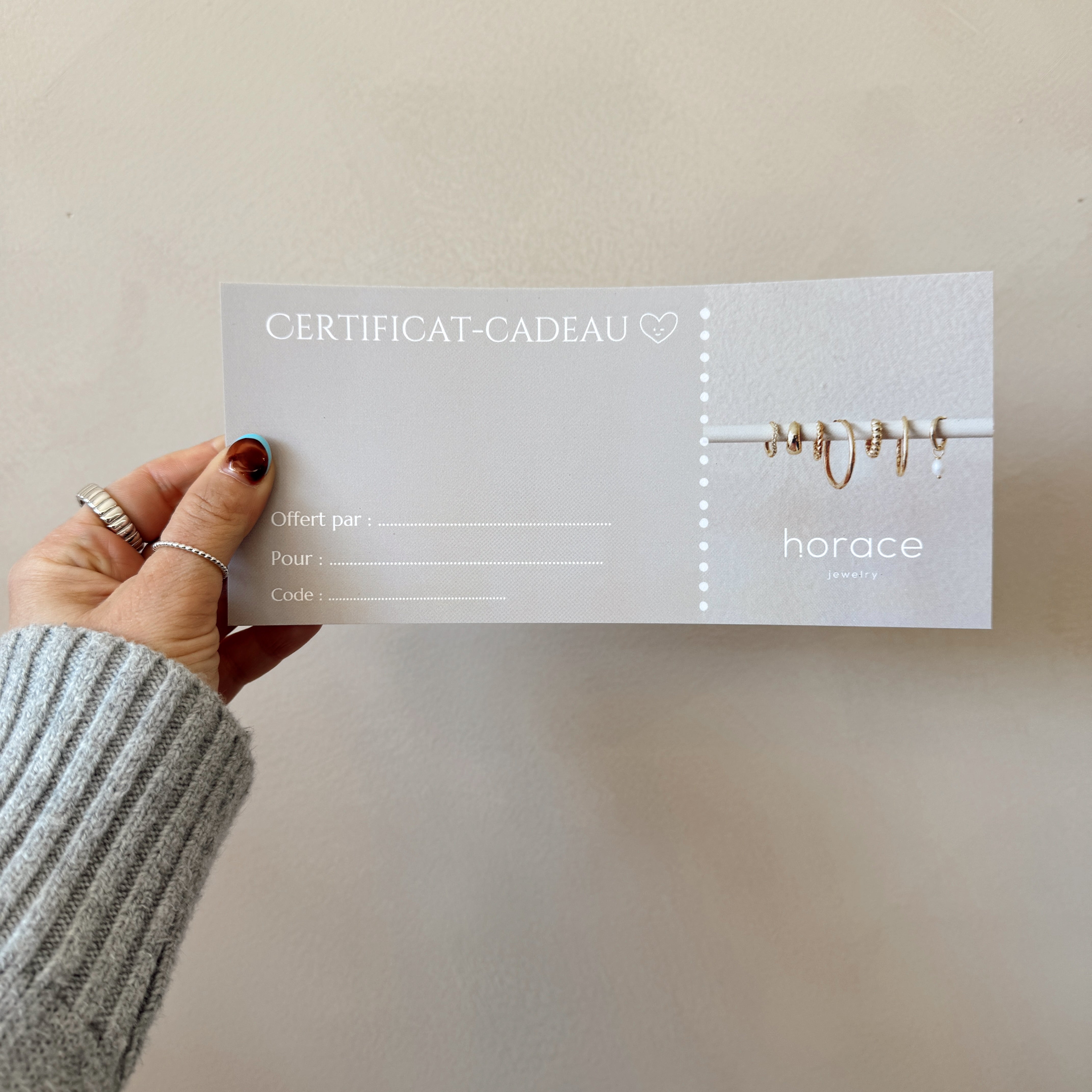 Offrez notre certificat-cadeau physique Horace en cadeau à vos proches.