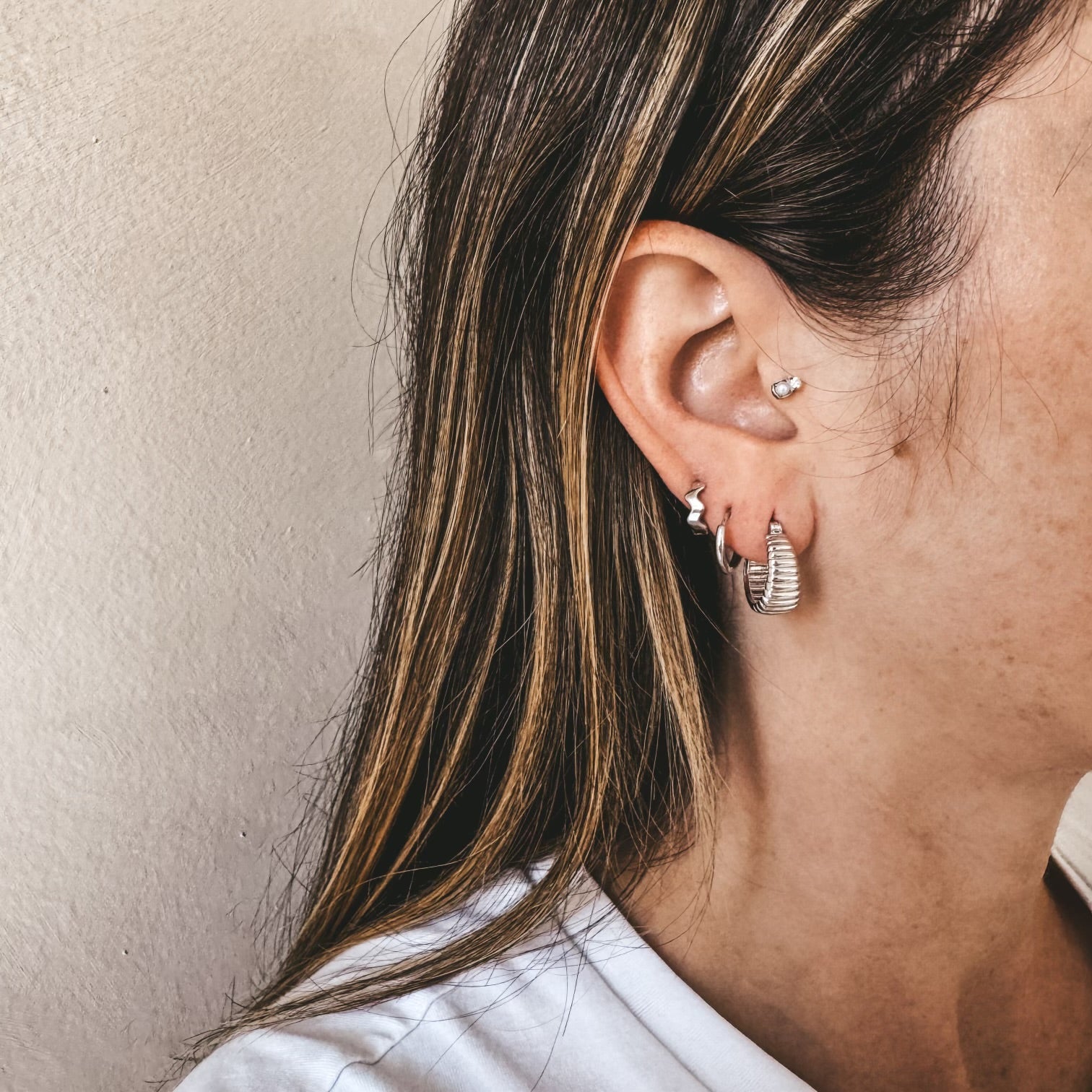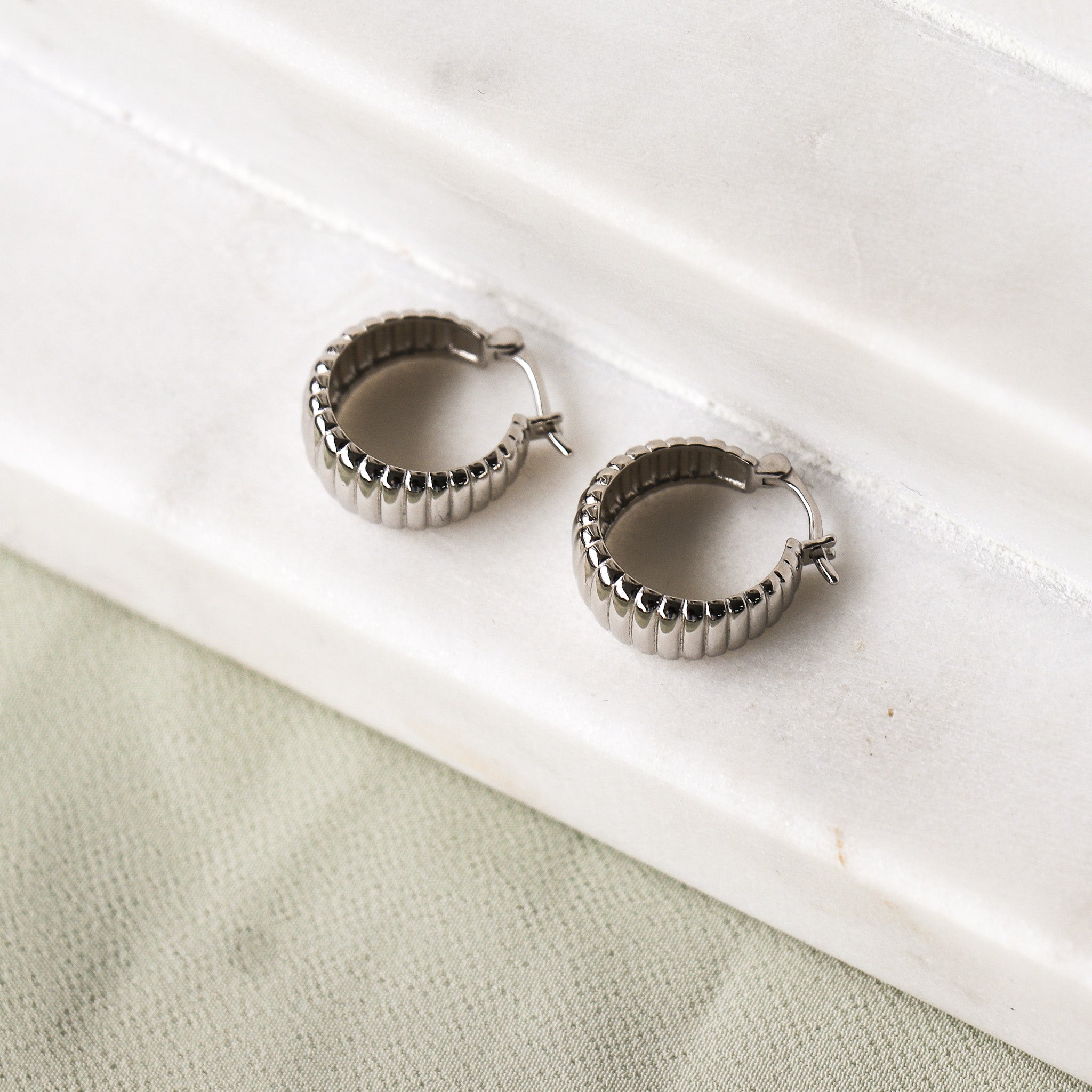 Boucles d'oreilles de types anneaux avec une texture ondulée.