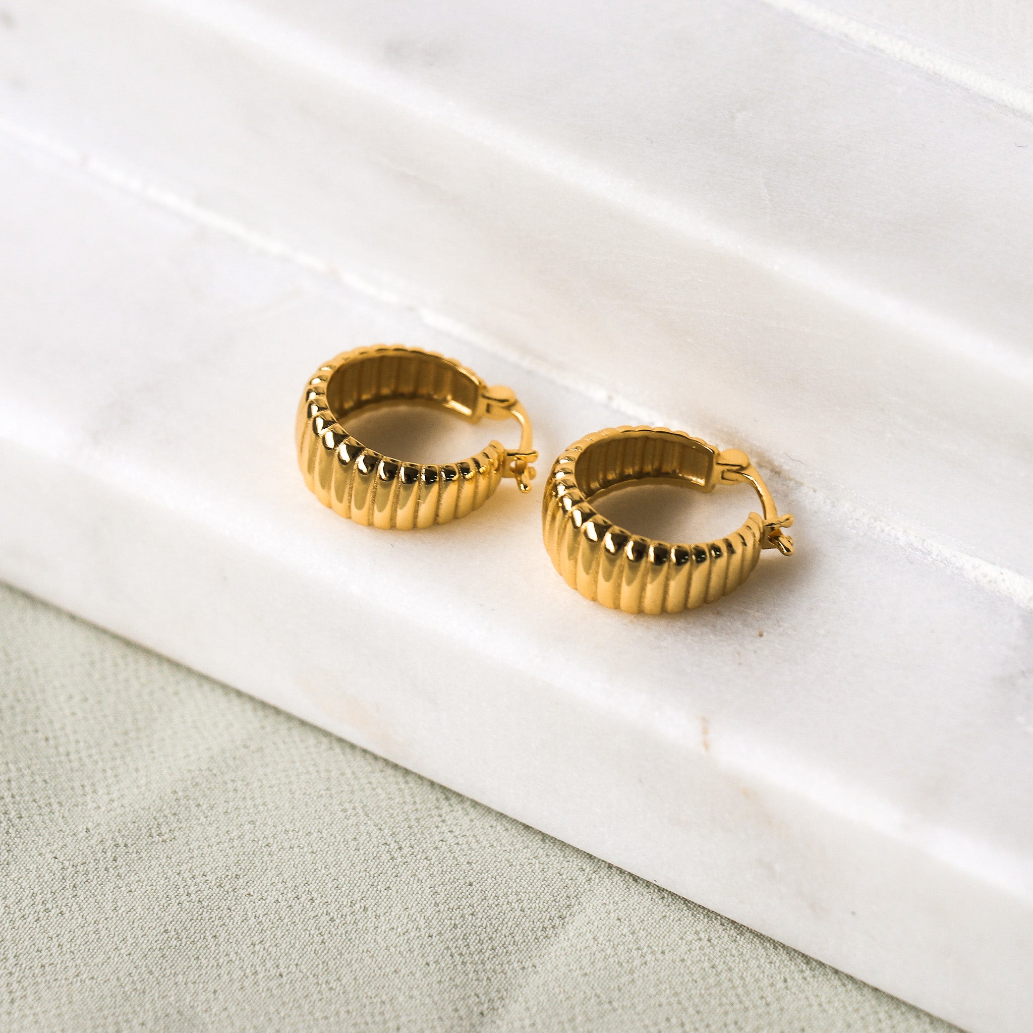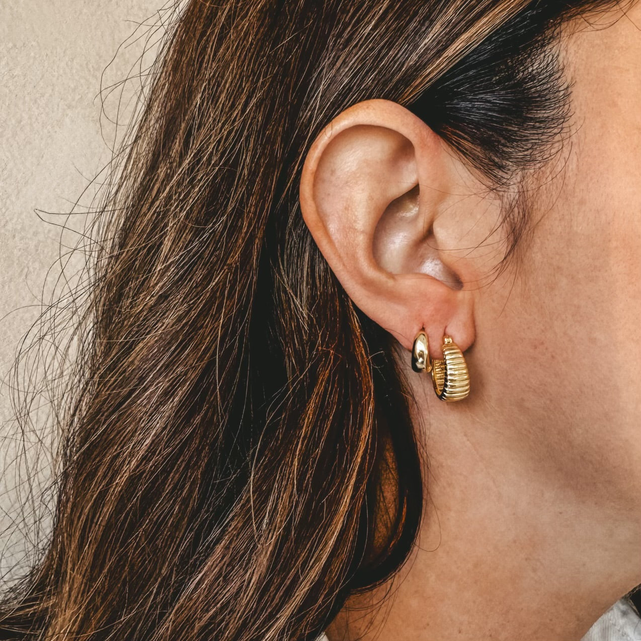 Boucles d'oreilles de types anneaux avec une texture ondulée.