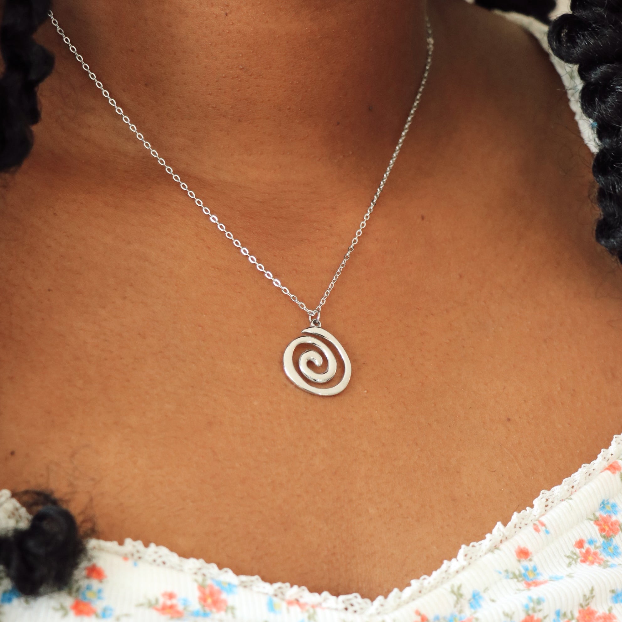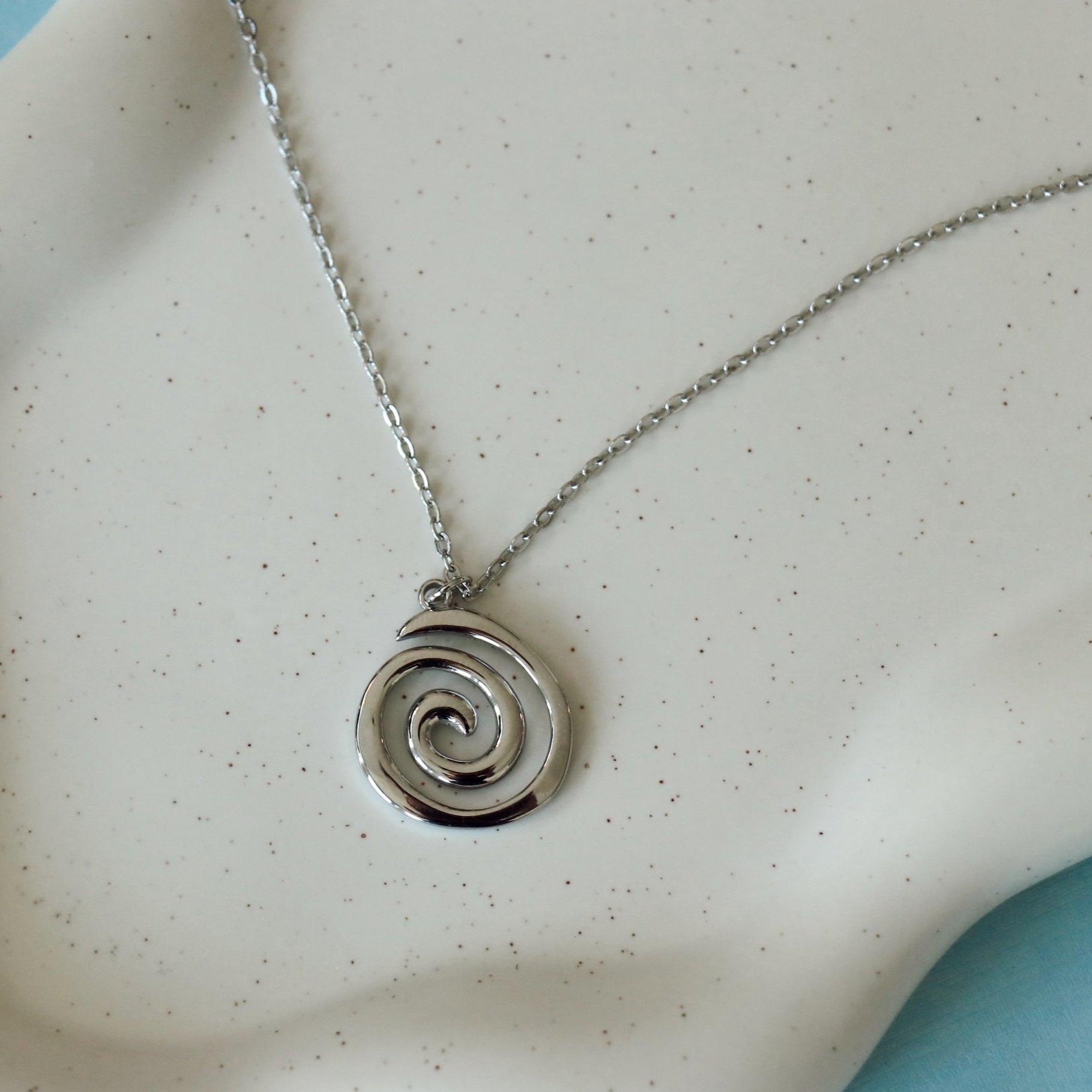 Collier composé d'une chaîne fine et d'un pendentif en forme de spirale. S'agence avec tous vos ensembles pour la saison estivale!