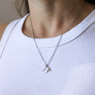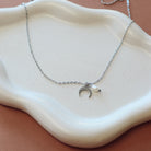 Collier avec chaîne délicate ornée d'un pendentif en forme de corne/demi-lune et petite perle d'eau douce. Un classique indémodable qui se porte avec tout.