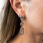 Boucles d'oreilles à tiges et pendantes composées de trois sections de formes irrégulières et martelées. De style vintage, elles sont originales.