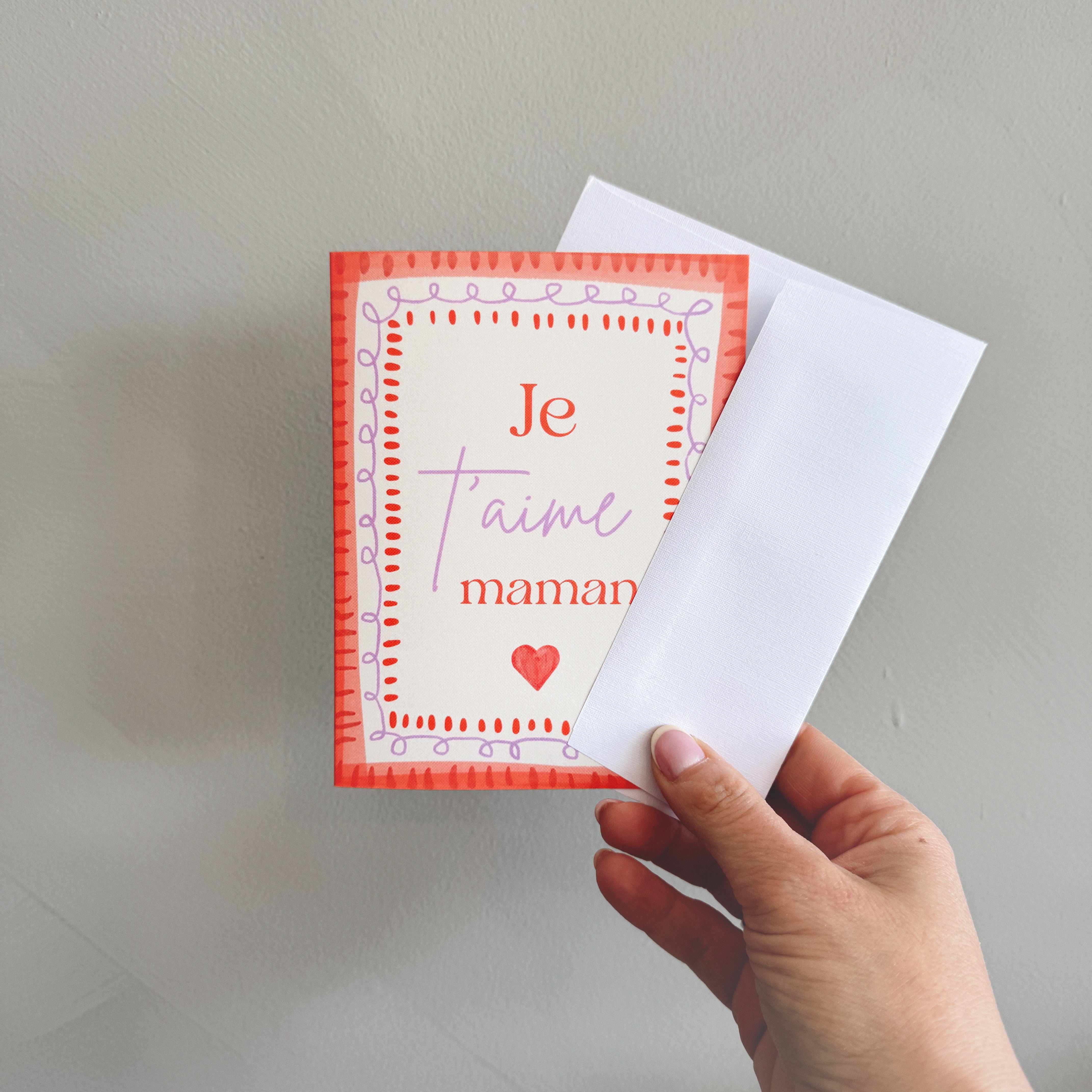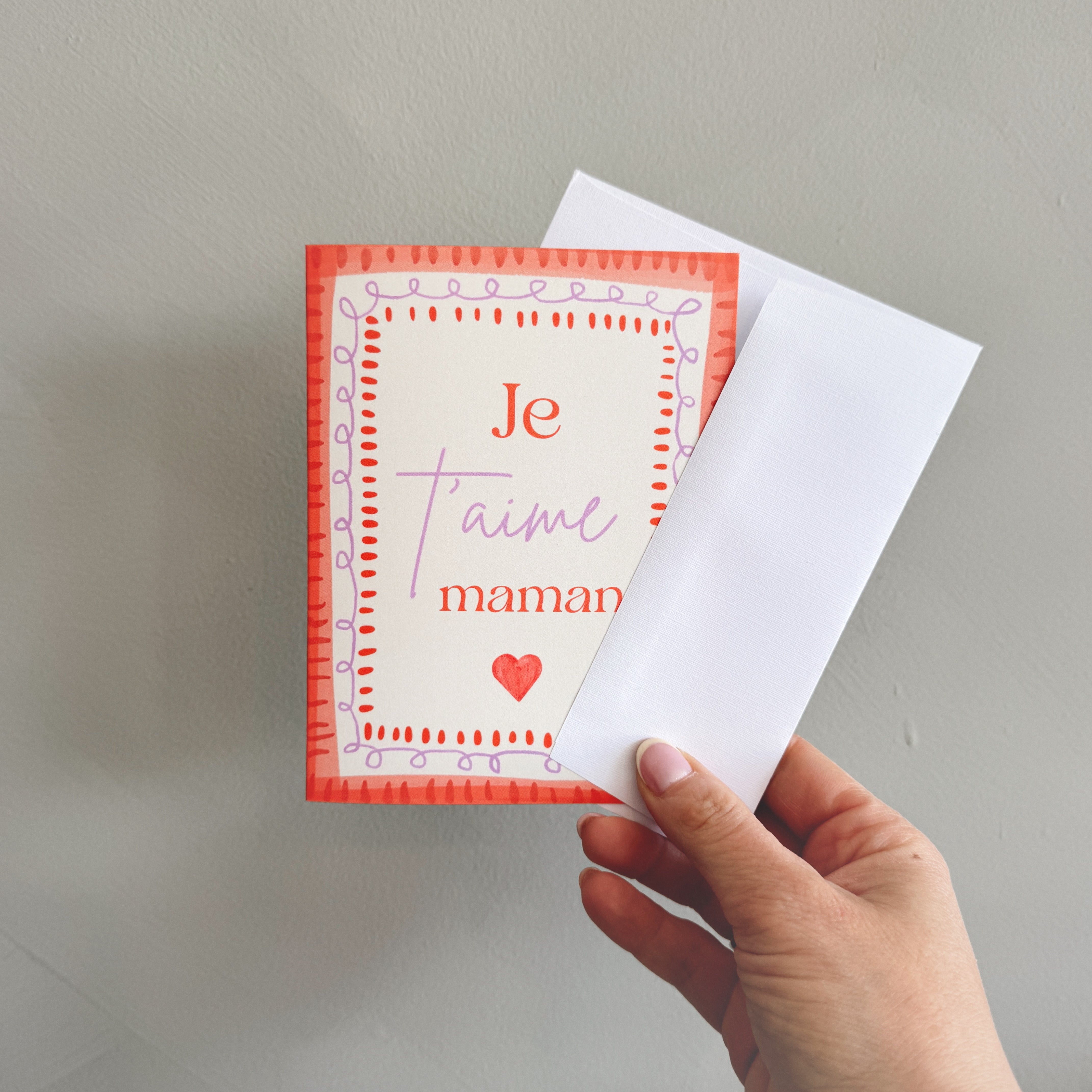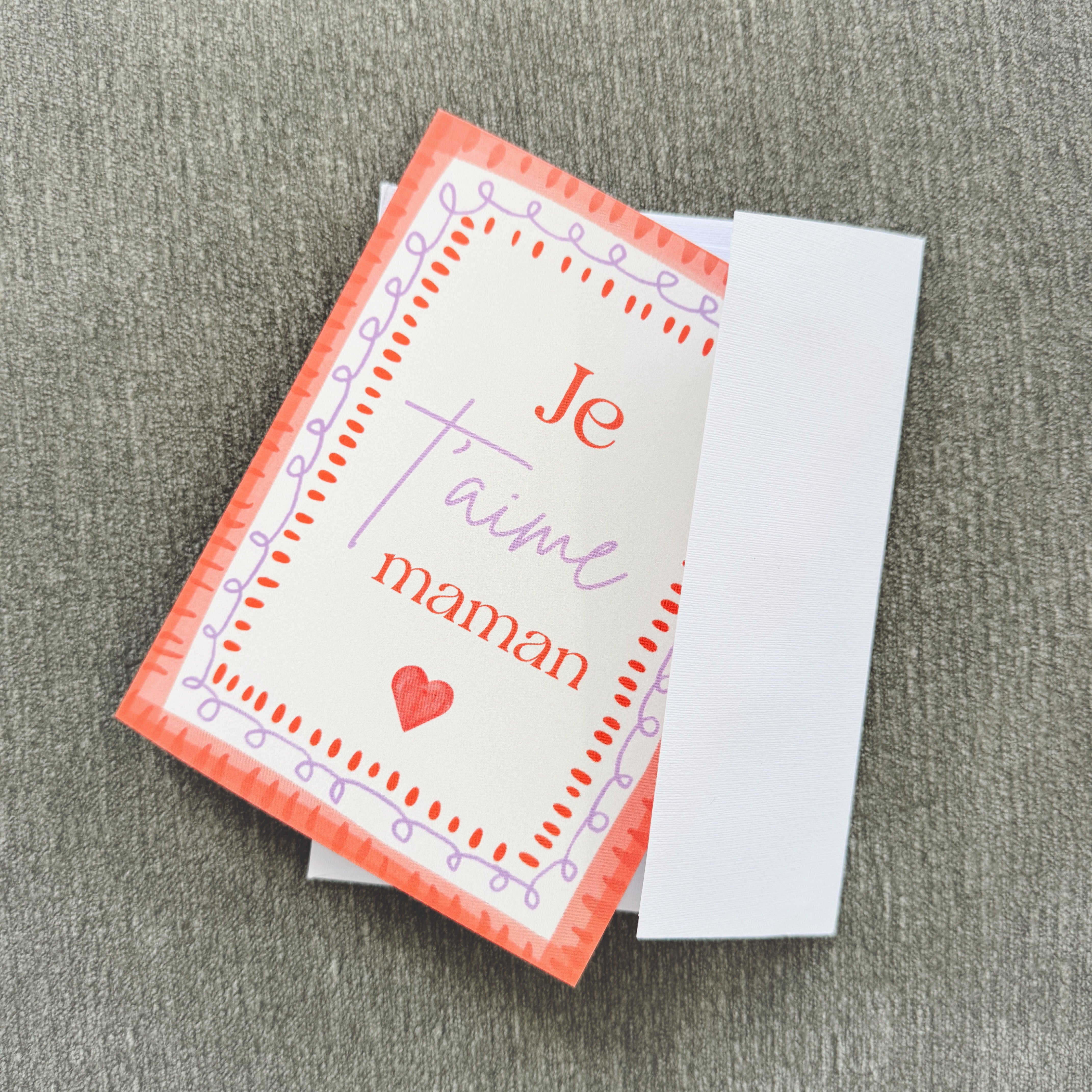 "Je t'aime Maman" à l'avant et sans texte à l'intérieur.