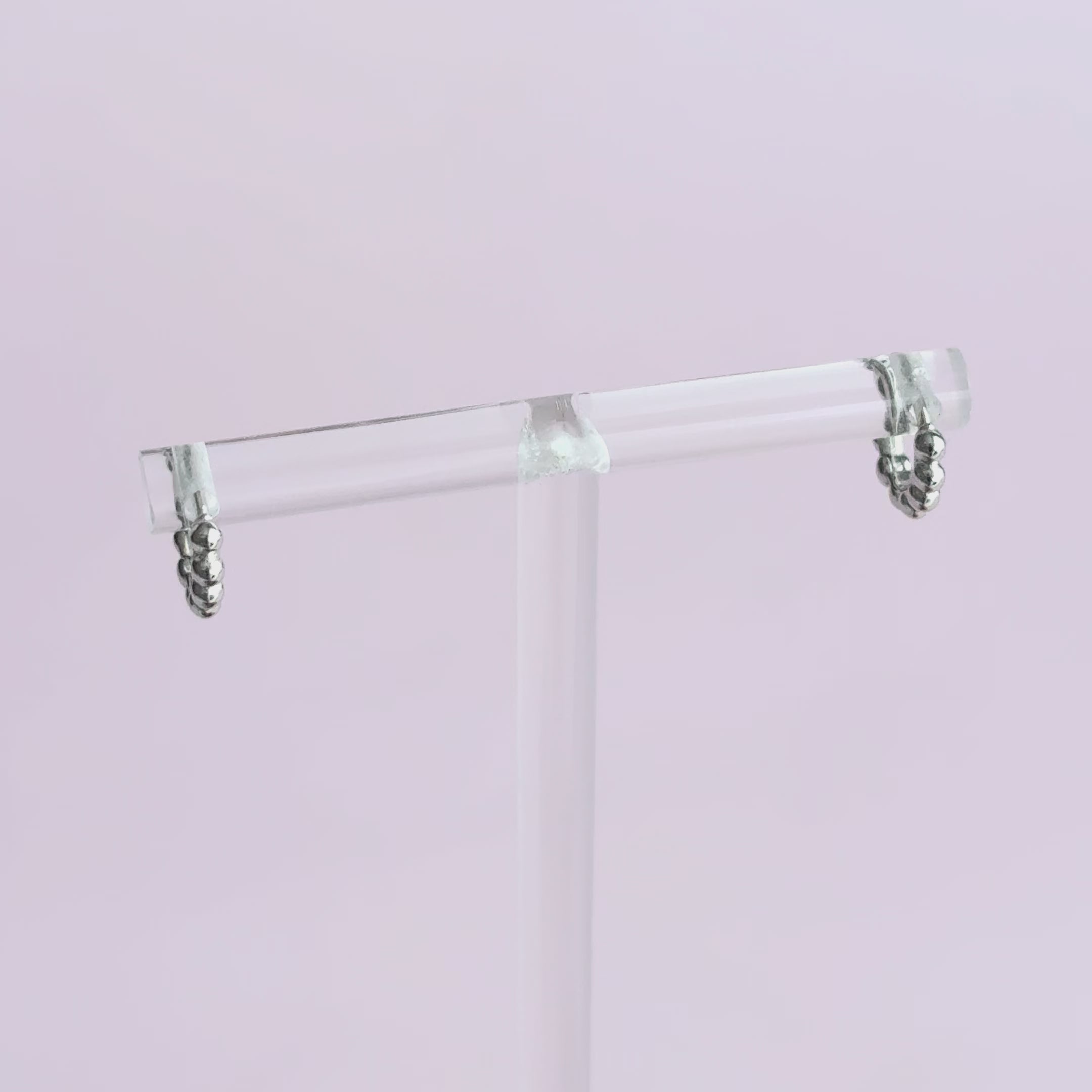 Petites boucles d'oreilles de type dormeuses ornées de petites billes. Elles sont délicates et idéales pour les 2e trou de piercing.