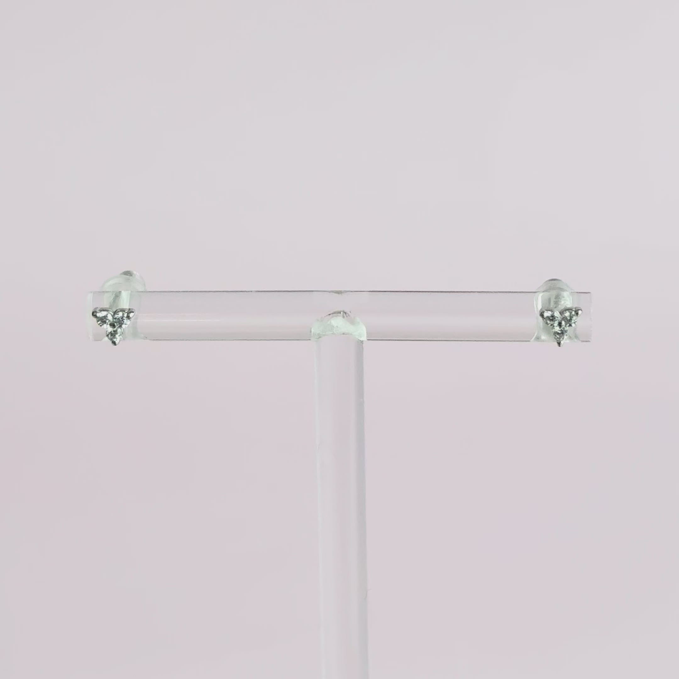 Petites boucles d'oreilles de type studs ornées de trois zircons blancs formant un petit triangle. Se porte aussi bien dans le premier que dans les 2e ou 3e trous de piercings du lobe. Versatiles, elles se marieront avec tous les styles.