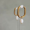 Boucles d'oreilles anneaux de forme ovale avec pendentif en perle d'eau douce.