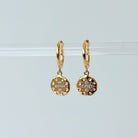 Boucles d'oreilles délicates avec un anneau de type dormeuse. Petit pendentif scintillant fixé sur l'anneau.