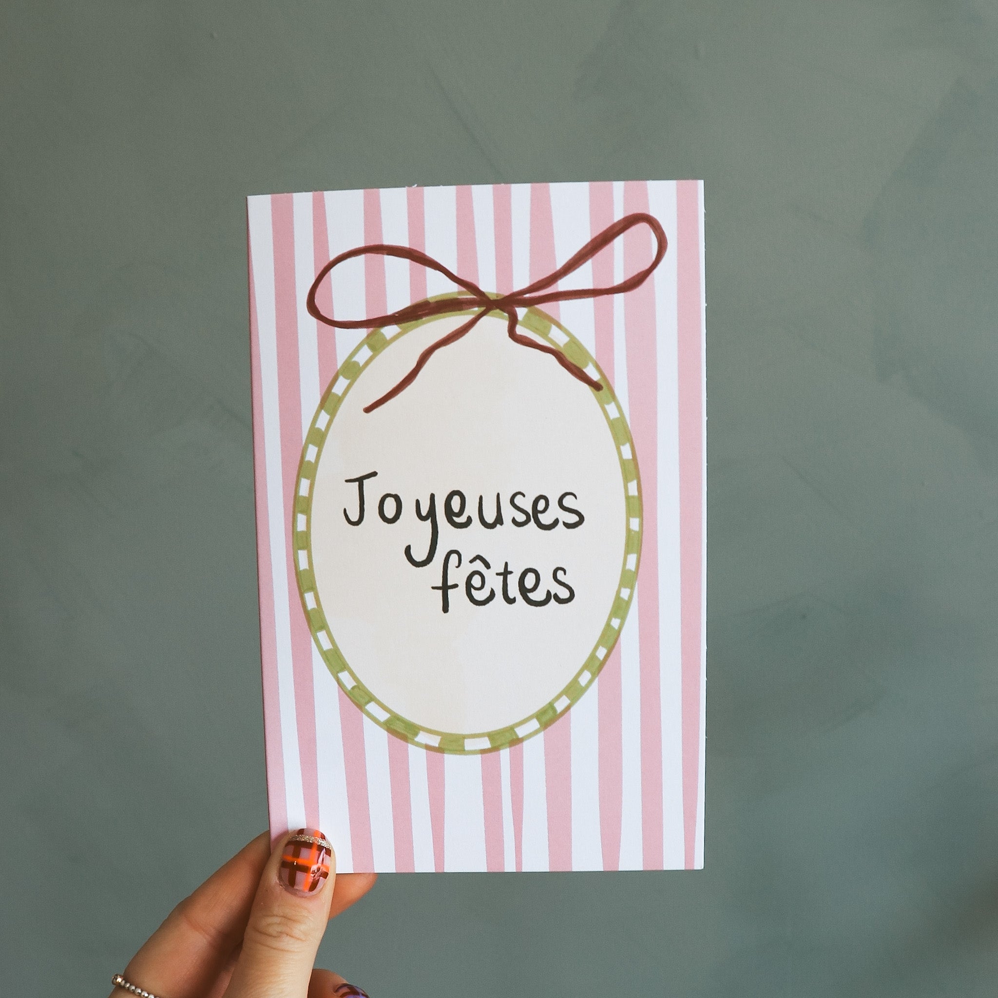 Offrez notre carte de souhaits Joyeuses Fêtes pour cette saison festive. Cette carte est dessinée par notre co-fondatrice Marie-Jo.